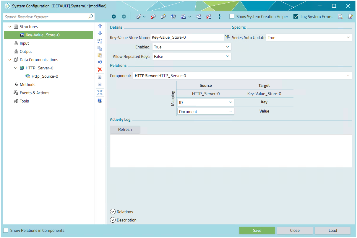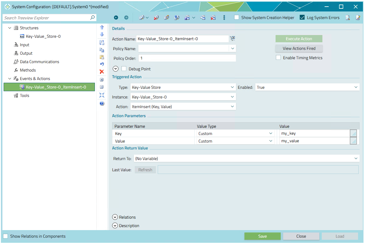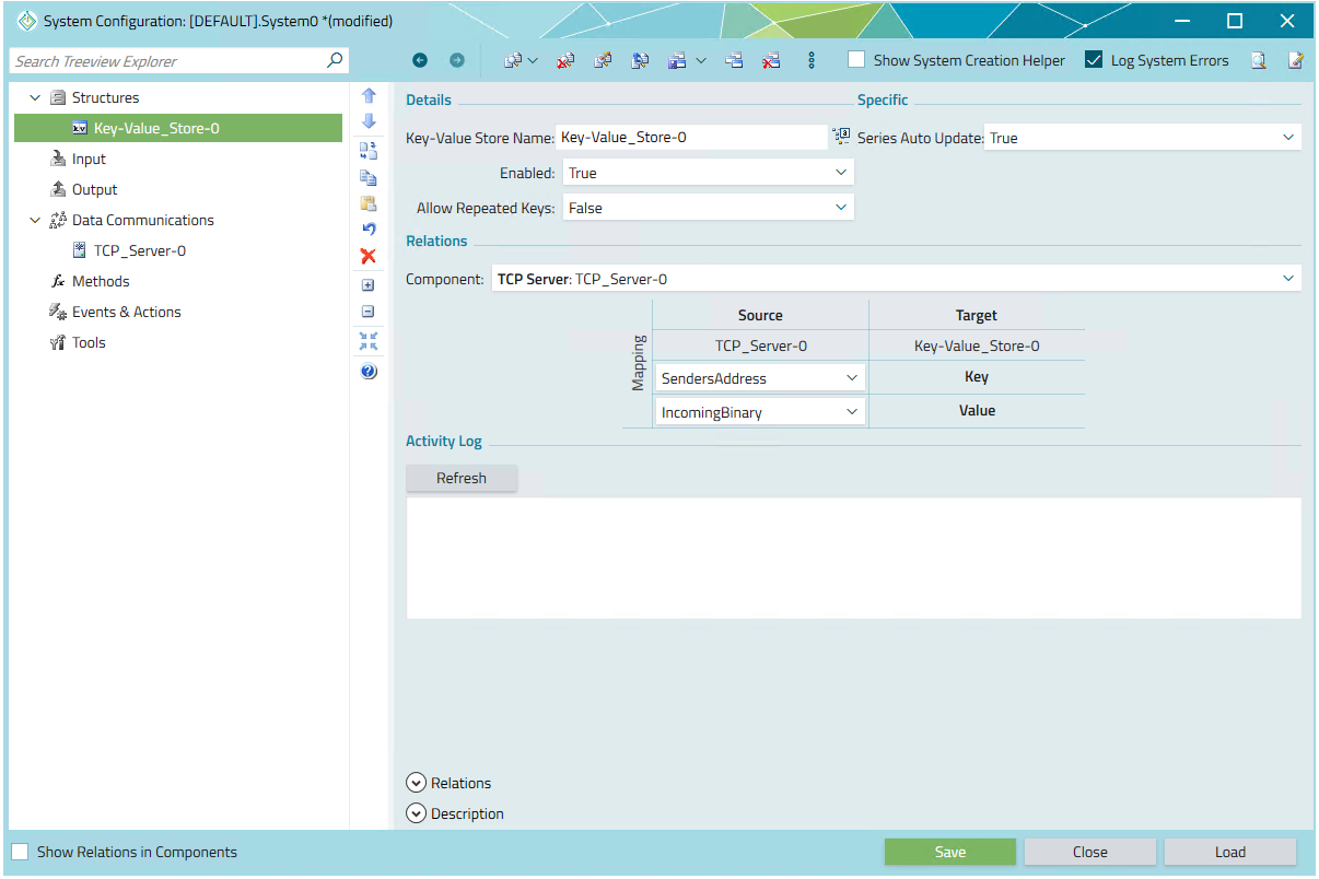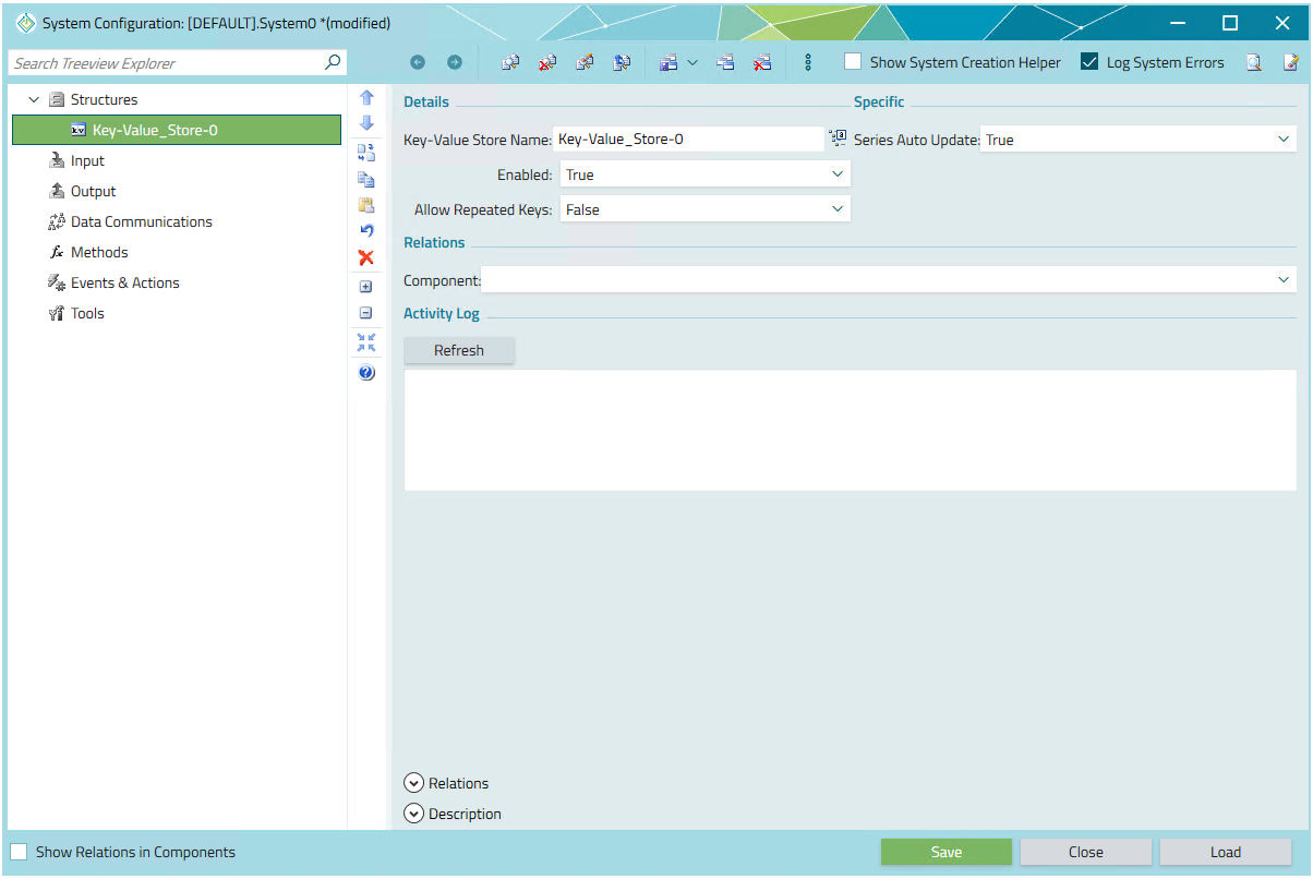 To create a Key-Value Store component, right-click the DataStructures section in the system tree and