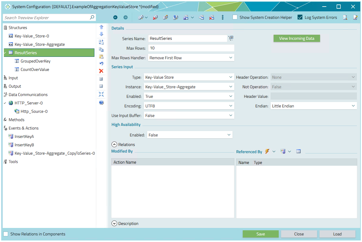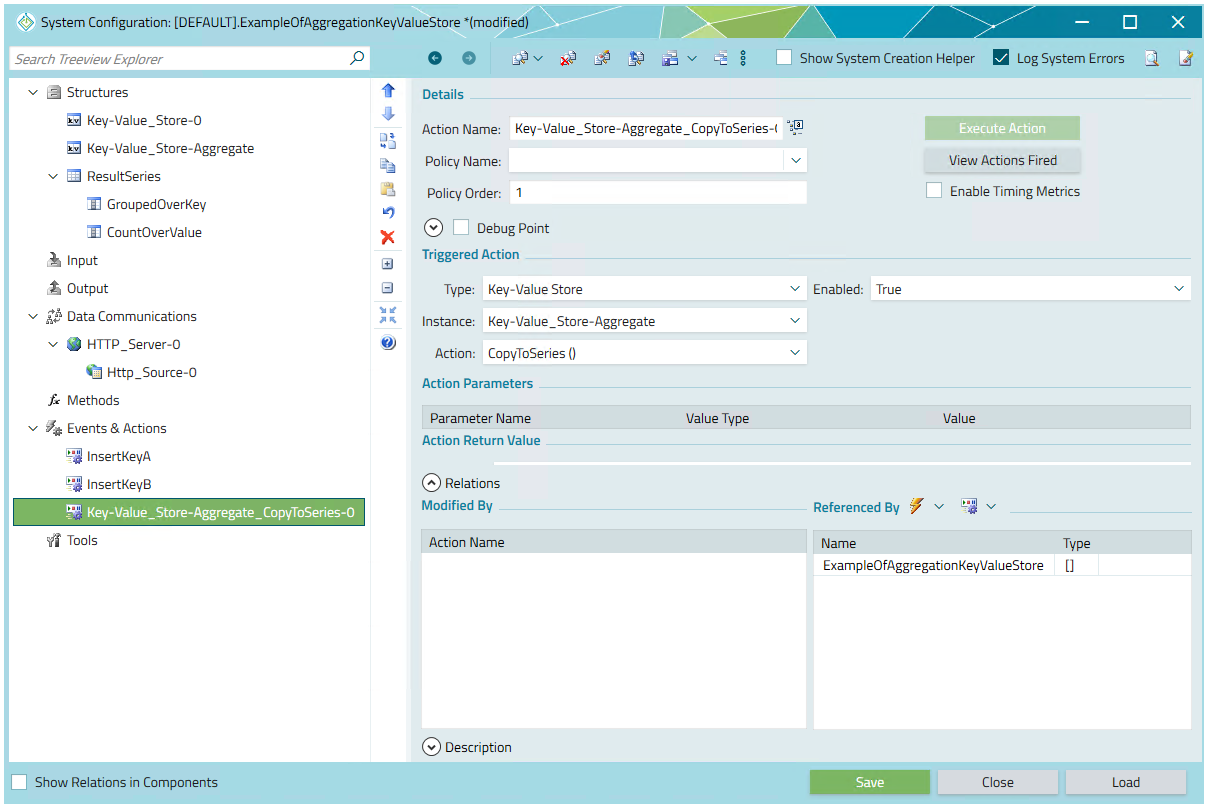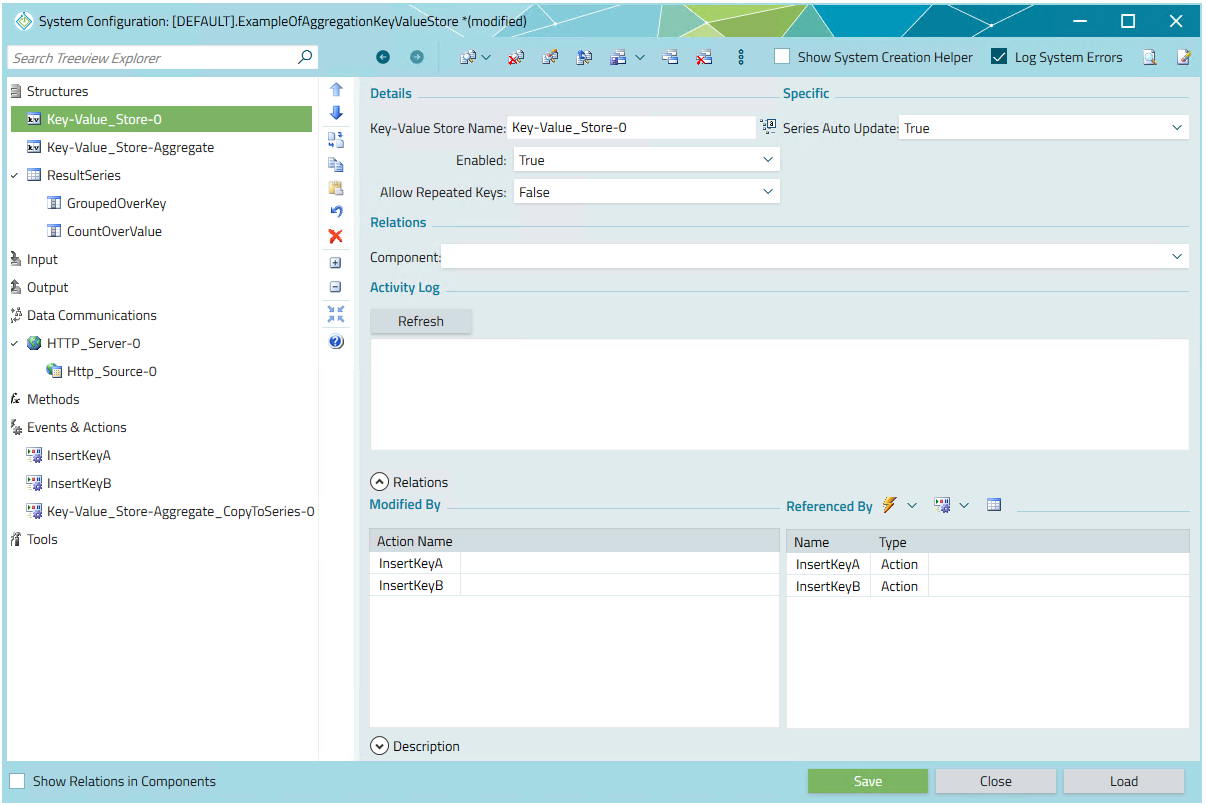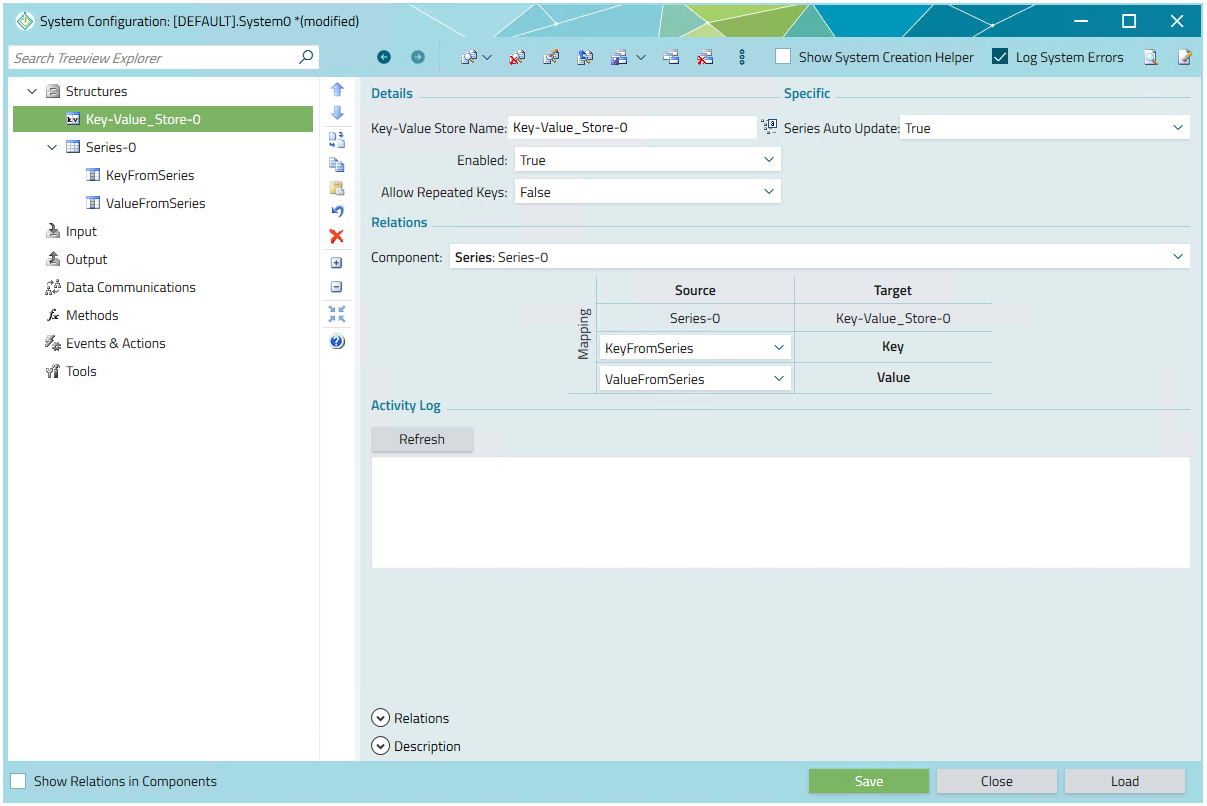 To create a Key-Value Store component, right-click the DataStructures section in the system tree and